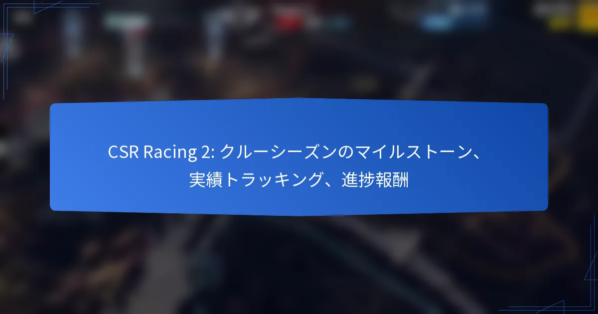 CSR Racing 2におけるマイルストーン達成のための効果的な戦略は、クルーメンバーの役割を最適化し、コミュニケーションを強化し、パフォーマンスを追跡することです。リソースの配分とイベント参加に焦点を当てることで、プレイヤーは進行報酬と全体的な成功を大幅に向上させることができます。