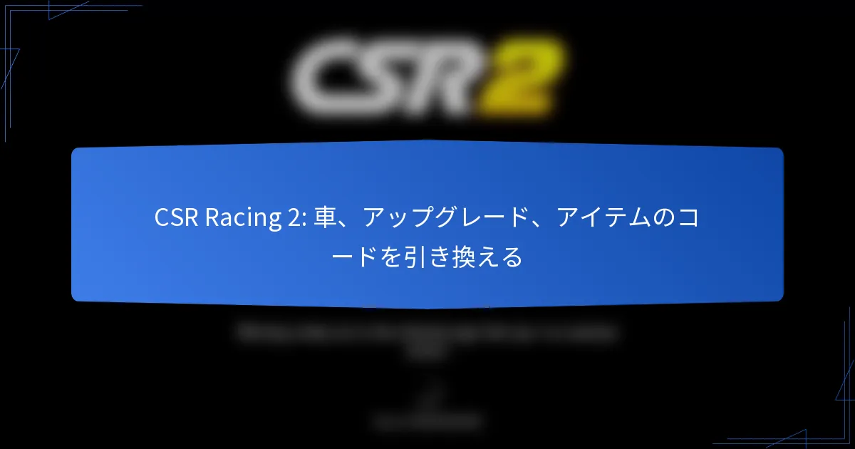 CSR Racing 2: 車、アップグレード、アイテムのコードを引き換える